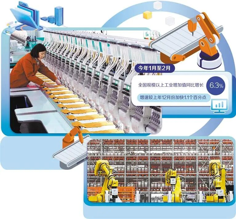 傳統(tǒng)產(chǎn)業(yè)是現(xiàn)代化產(chǎn)業(yè)體系的重要組成部分,是推動(dòng)產(chǎn)業(yè)轉(zhuǎn)型升級、接續(xù)發(fā)展新動(dòng)能的關(guān)鍵領(lǐng)域。國家統(tǒng)計(jì)局?jǐn)?shù)據(jù)顯示,今年1月至2月,全國規(guī)模以上工業(yè)增加值同比增長6.3%,增速較上年12月份加快1.1個(gè)百分點(diǎn)。工業(yè)經(jīng)濟(jì)實(shí)現(xiàn)良好開局,彰顯了傳統(tǒng)產(chǎn)業(yè)穩(wěn)中提質(zhì)的韌性和轉(zhuǎn)型升級的內(nèi)生動(dòng)力。